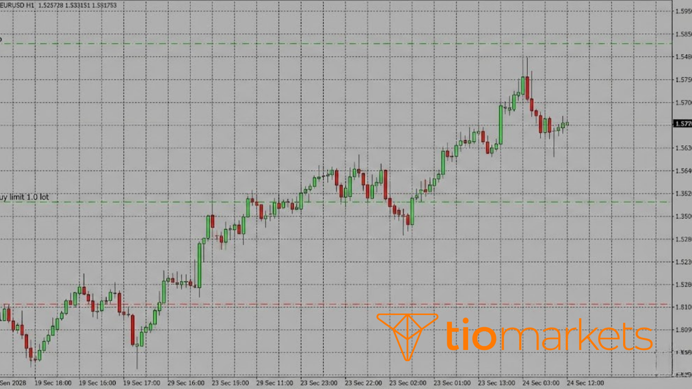 Buy Limit هو أمر شراء معلق يوضع عند سعر أقل من السعر الحالي. تستخدمه عندما تتوقع أن السعر سينخفض أولاً إلى مستوى معين (مستوى دعم) ثم يرتد صعوداً.