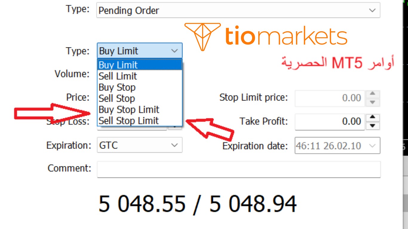 MT5 توفر 6 أنواع بإضافة Buy Stop Limit و Sell Stop Limit.