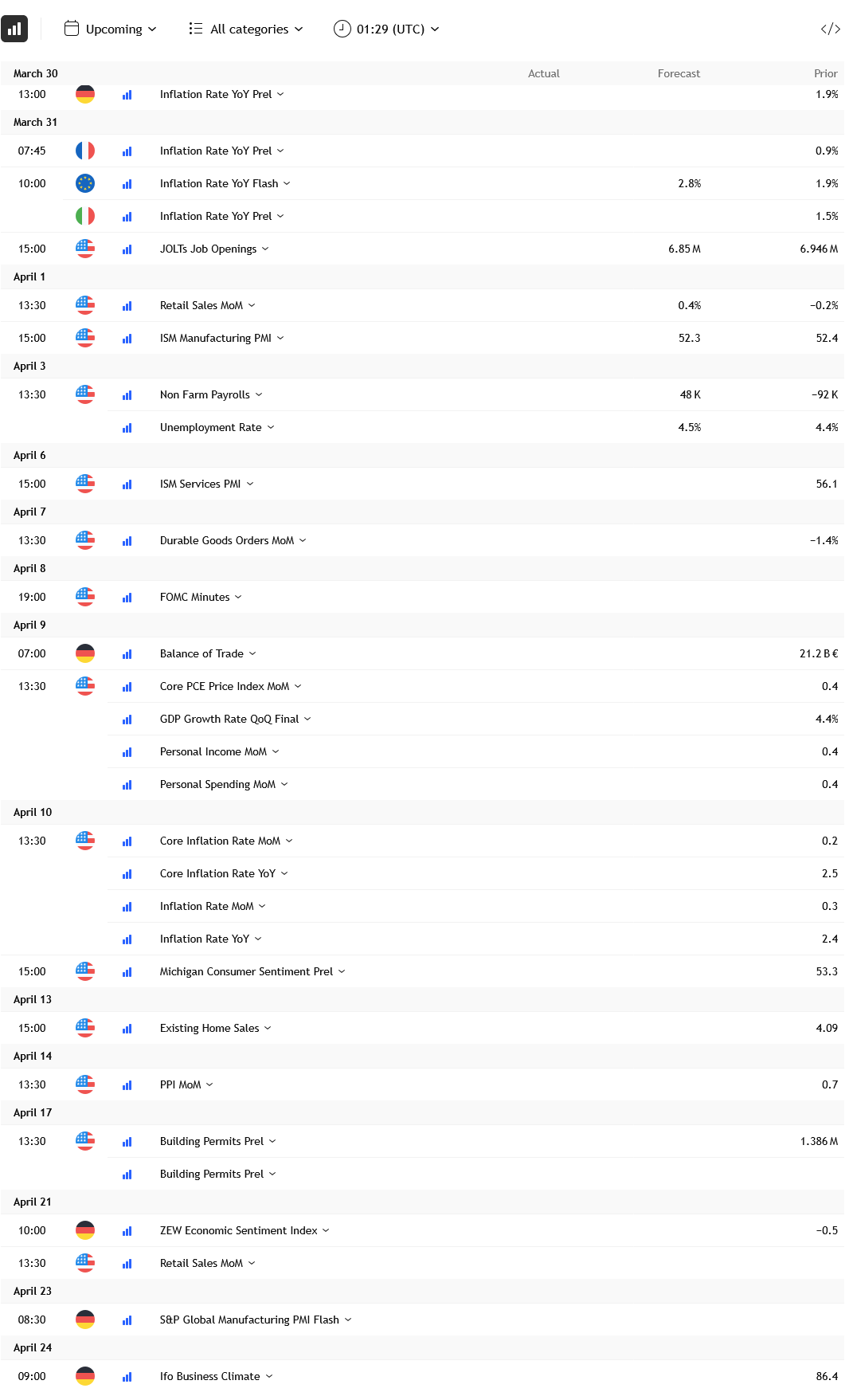 • Country-level Inflation Data: This indicates how prices evolve across the bigger European economies and help shape Euro sentiment.