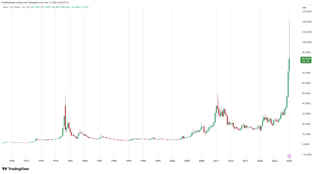 Below is a 5-year period historical performance table for Silver (XAGUSD) from 1970–2025.