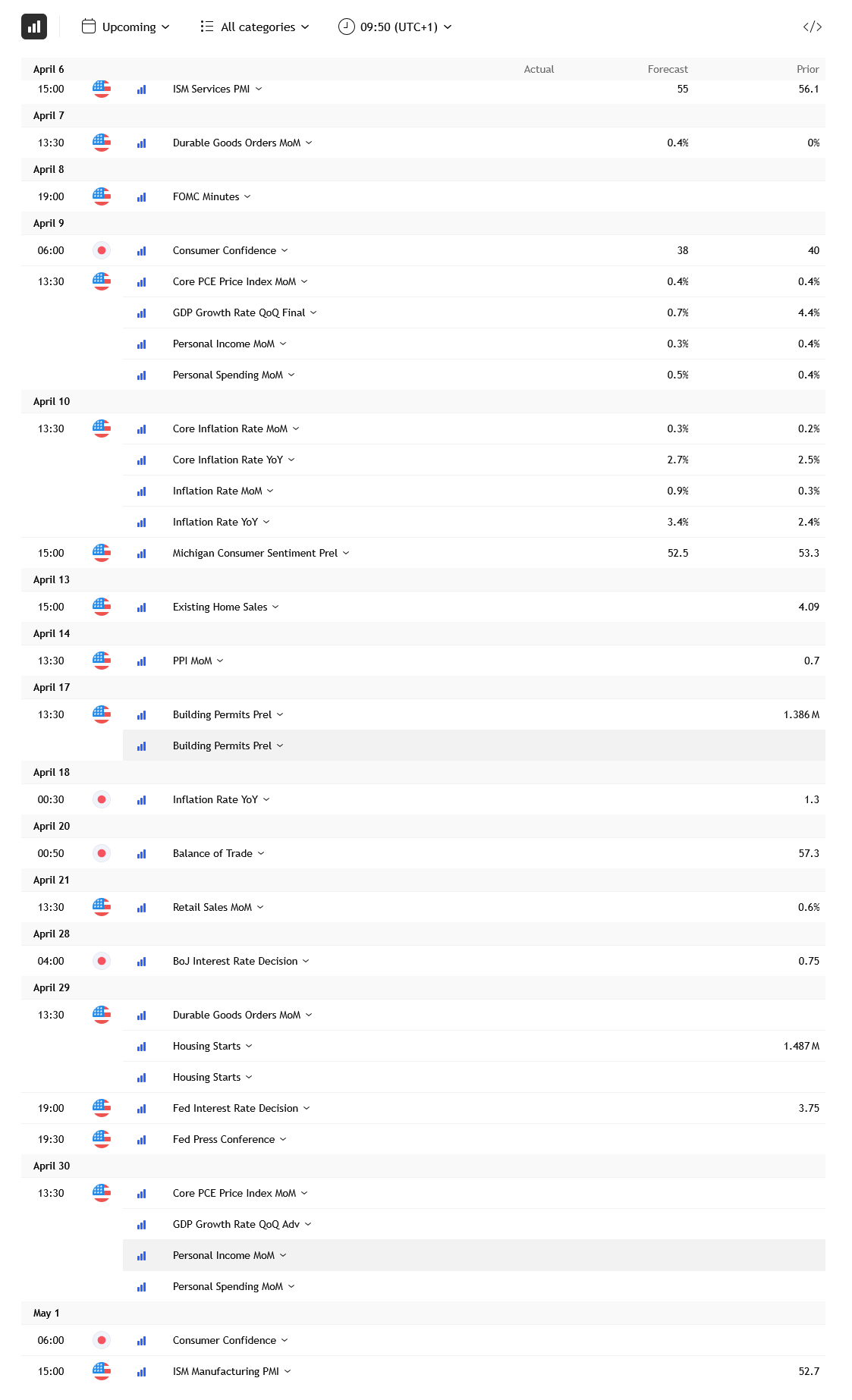 - ISMServicesPMI: Gives a solid indication of the health of the services sector, considering services make up the majority of US economy.